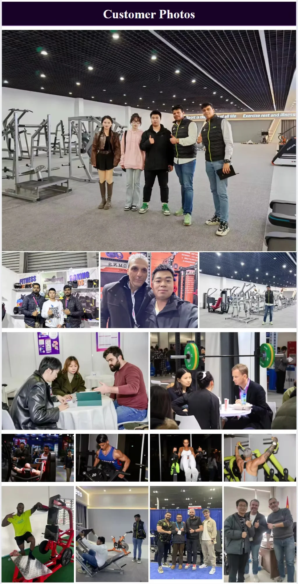 We are an extremely professional team. Each department has its own specific tasks to handle. We each perform our own duties. Over the past year and a half, our online transaction volume has reached over ten million US dollars. We are very grateful to our customers for their recognition of our products and services, and we are also looking forward to maintaining a long-term connection with them. We have communicated with many customers and recorded these communication processes. We are very happy to have met them, and they have also given positive evaluations of the products we provided. They are very satisfied with the fitness equipment we offered. This is undoubtedly a win-win outcome.
