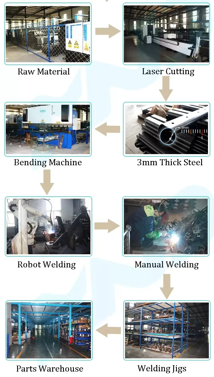 We utilize 3mm thick high-strength steel and precision laser cutting for accuracy and durability. Our advanced bending machines shape components efficiently, followed by both robotic and skilled manual welding for strong, consistent joints. Standardized welding jigs ensure structural alignment, while a well-organized parts warehouse supports streamlined production, timely assembly,and stable quality across all units. Every step reflects our commitment to quality craftsmanship.